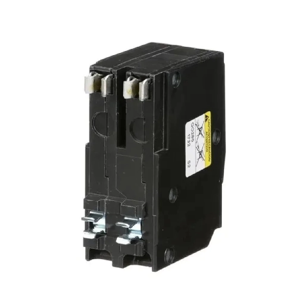 Los interruptores magnéticos térmicos de dos polos QO brindan protección contra sobrecorriente y conmutación en sistemas de CA y CC. Estos interruptores automáticos tienen un mecanismo de palanca libre de disparo sobre el centro con acción de apertura rápida, acción de apertura rápida e indicación de manija positiva. También tienen indicación de disparo VisiTrip, que proporciona una indicación visual de que el interruptor se disparó e interrumpió el circuito. Esta unidad proporciona una capacidad de ruptura de 10 kA y montaje enchufable.